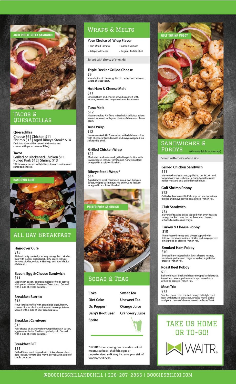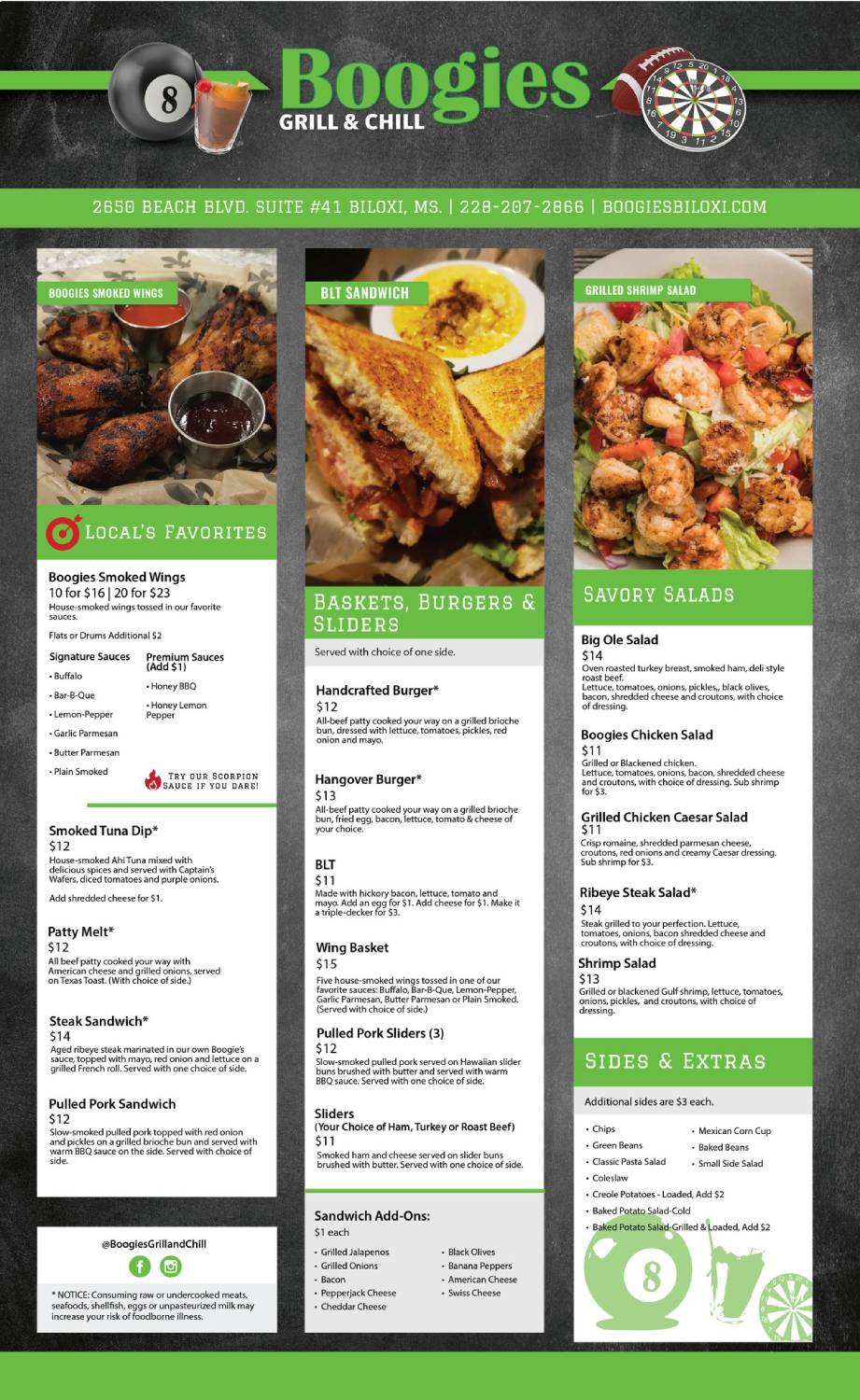 Ribeye steak marinated with our own boogie sauce, topped with mayo, red onion and lettuce on a grilled french roll, served with choice of side.
